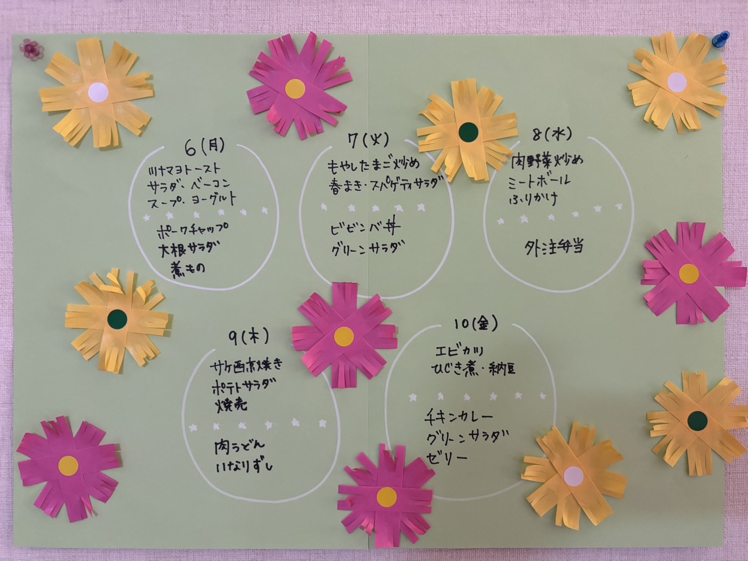 寮母さっちょん手づくりのメニュー表は、 コスモスでいっぱい🥰
