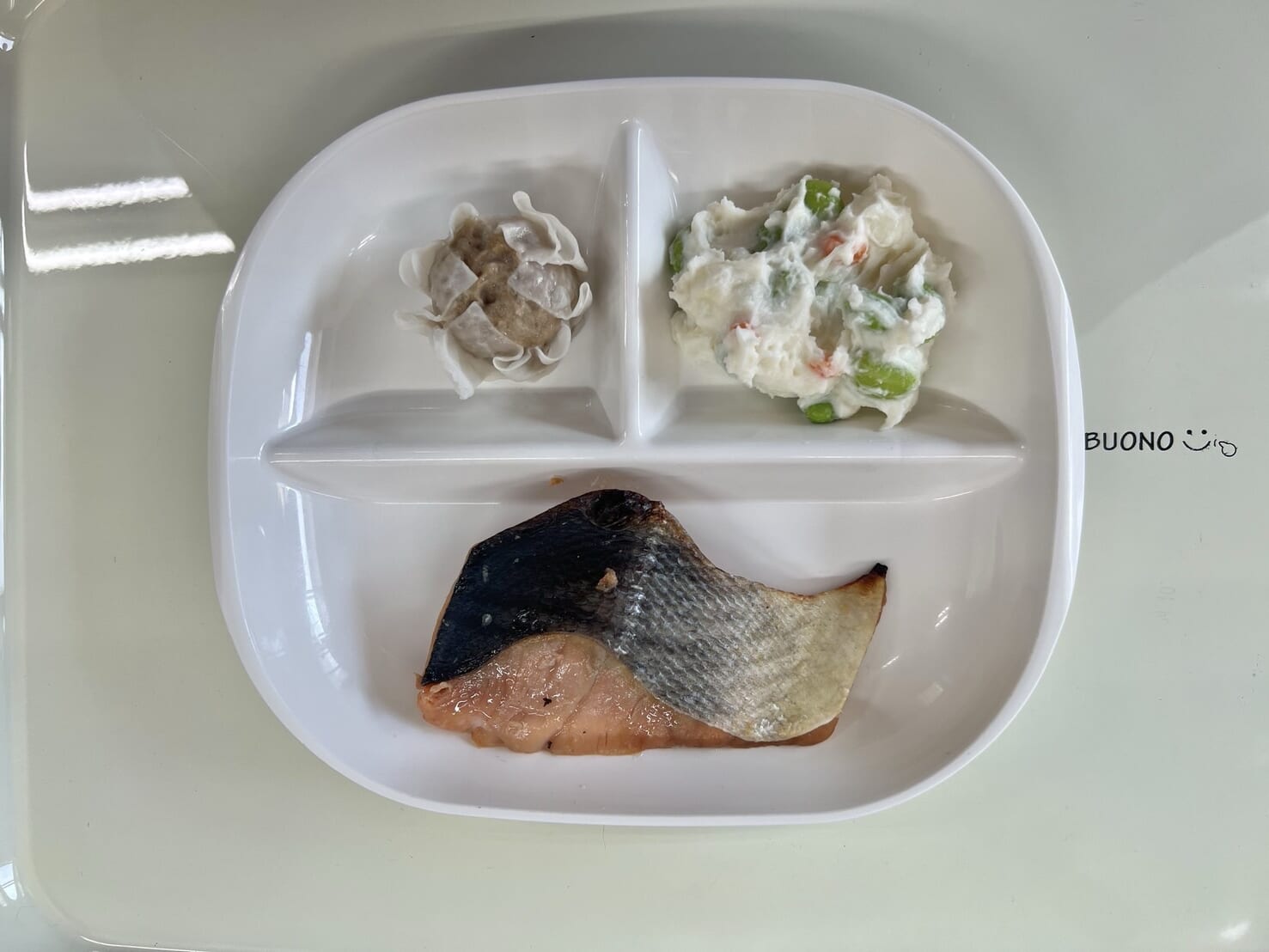 ・サケ西京焼き ・焼売 ・ポテトサラダ ・ご飯 ・味噌汁