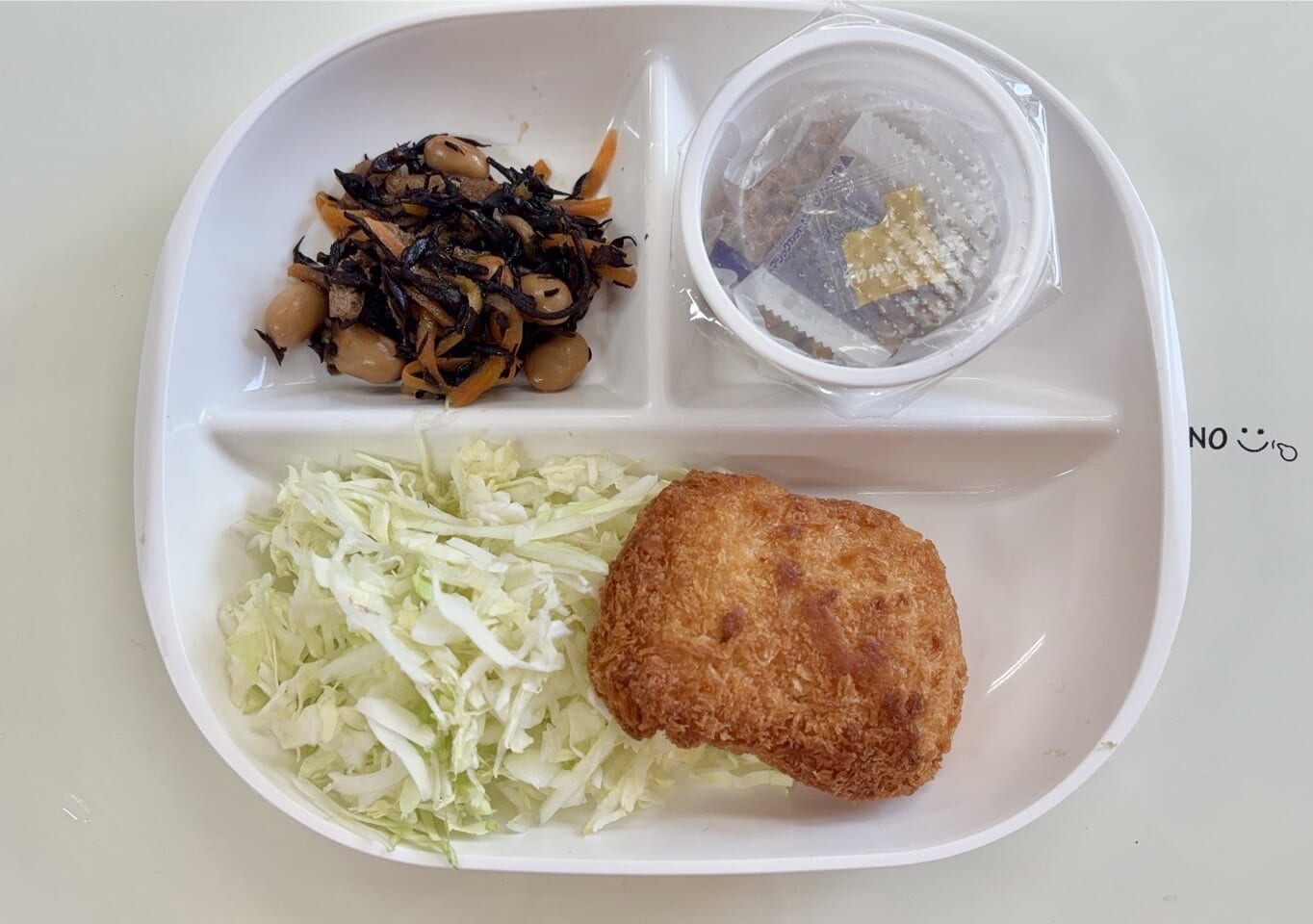 ・エビカツ ・ひじき煮 ・納豆 ・ご飯 ・味噌汁