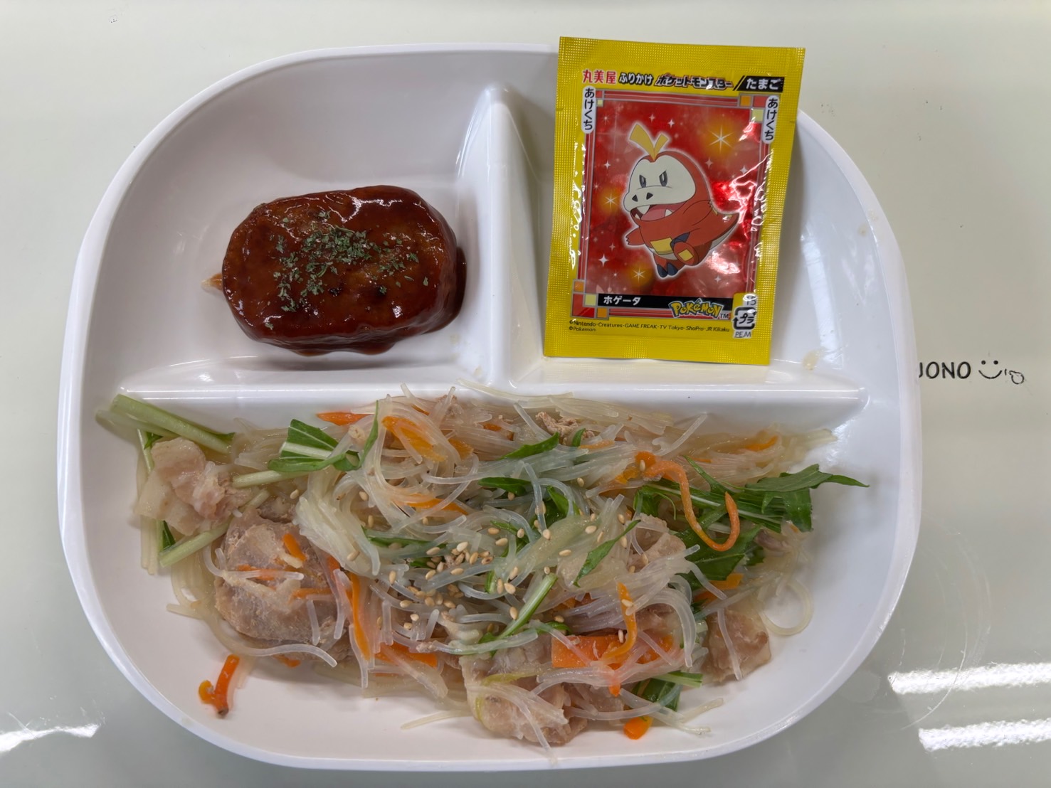 ・春雨炒め ・ミニハンバーグ ・ふりかけ ・ご飯 ・味噌汁