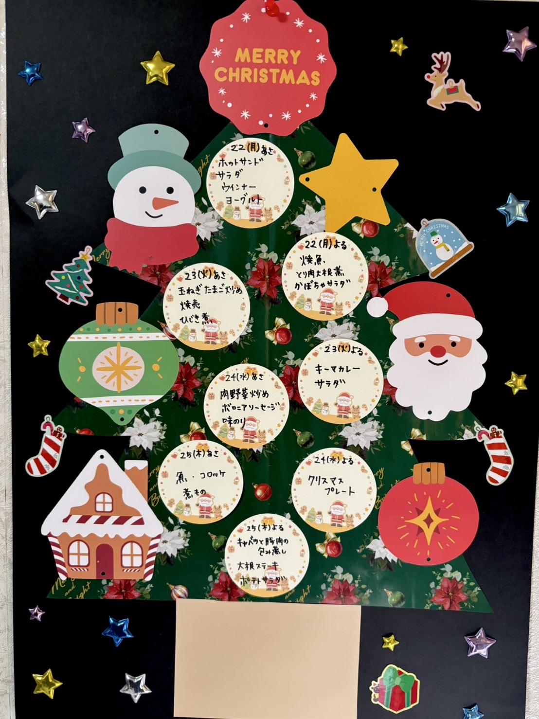 クリスマスツリーのたくさんの飾りが 今年1年、寮母さんや賄いさんが学生さんたちと 重ねてきた想い出の数にみえますね😊
