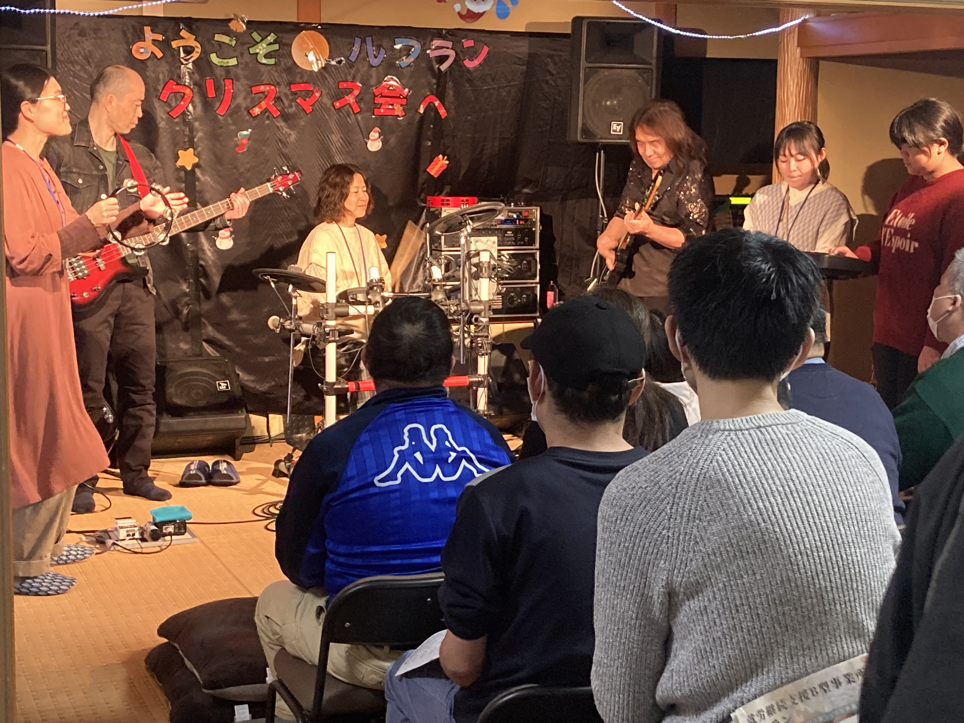 スタッフの皆さんとルフランに集う皆さんが「きよしこの夜」を演奏してくださり、