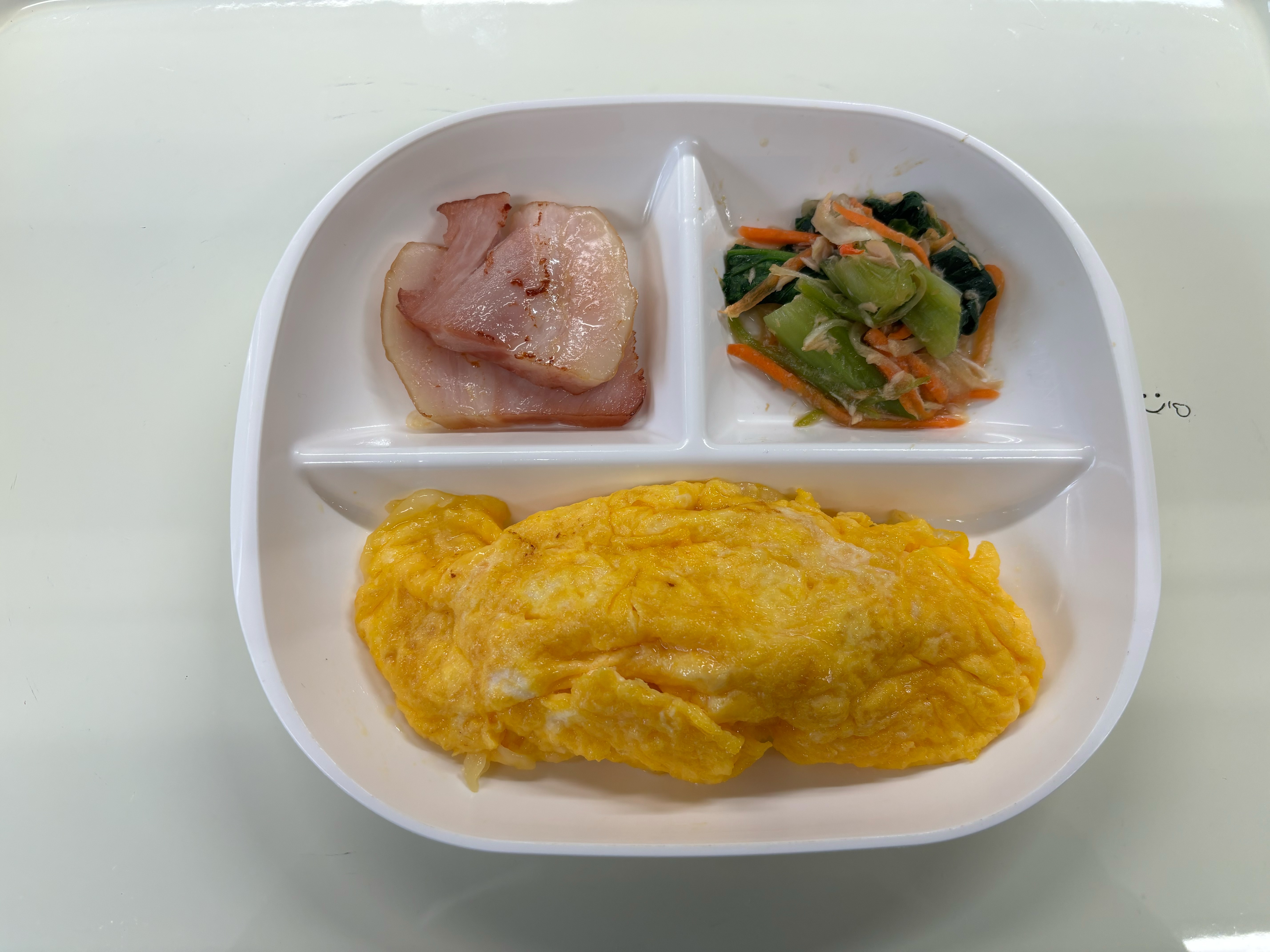 ・チーズオムレツ ・ハム ・小松菜のおひたし ・ご飯 ・味噌汁