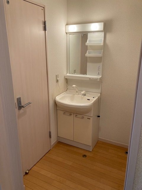 洗面化粧台はシャワー水栓付き