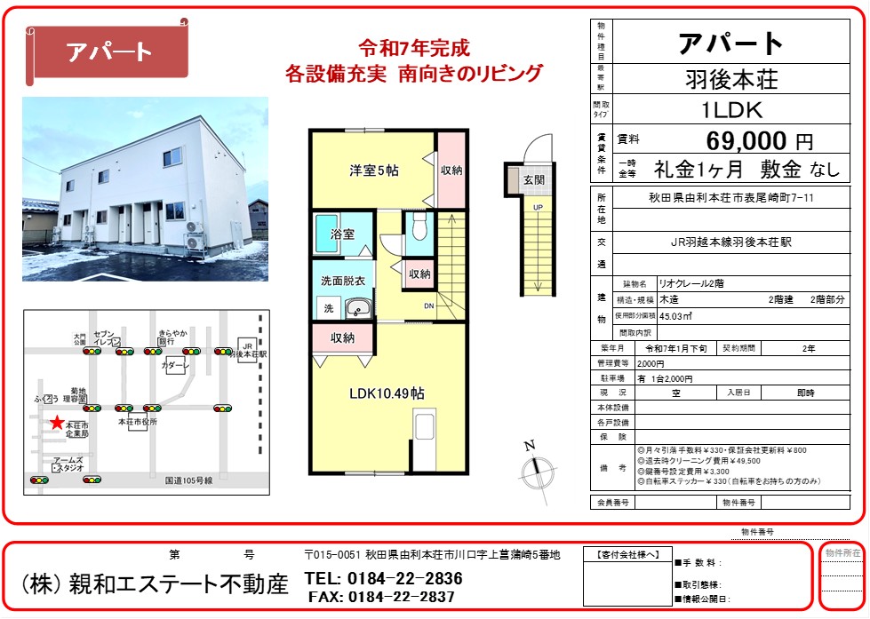 - 1LDK/LDK10.49帖・洋室5帖・ユニットバス・脱衣室・洗面・トイレ・クローゼット・収納