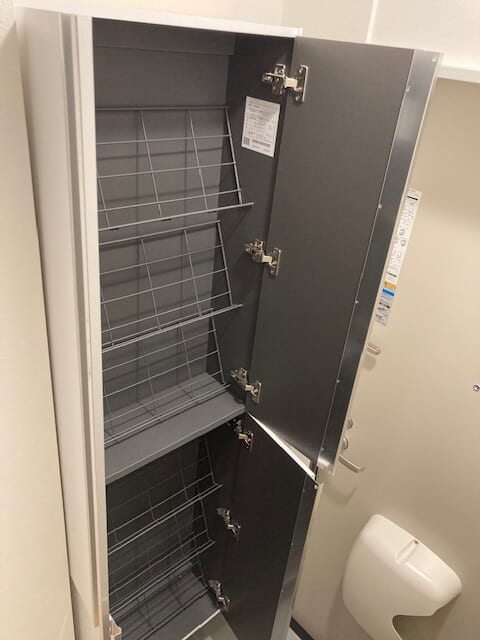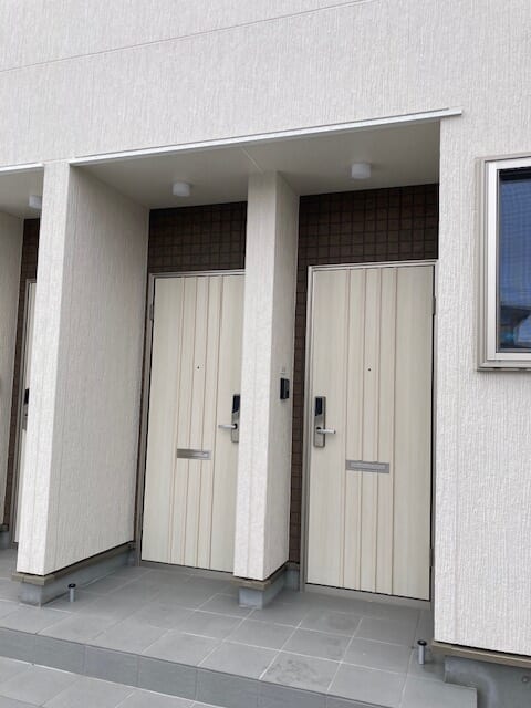 - 暗証番号式玄関錠edロック・カメラ付インターホン・エアコン・温水洗浄便座・洗面台・室内物干し