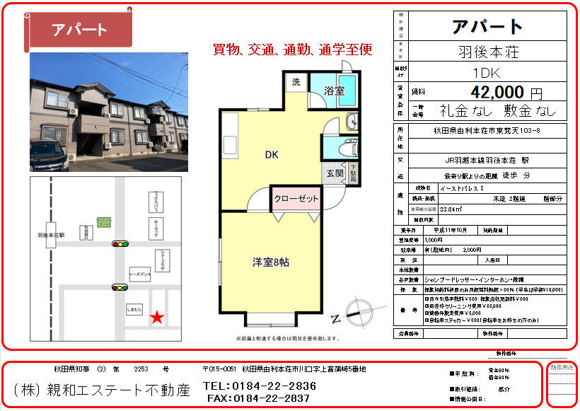 羽後本荘駅より徒歩11分