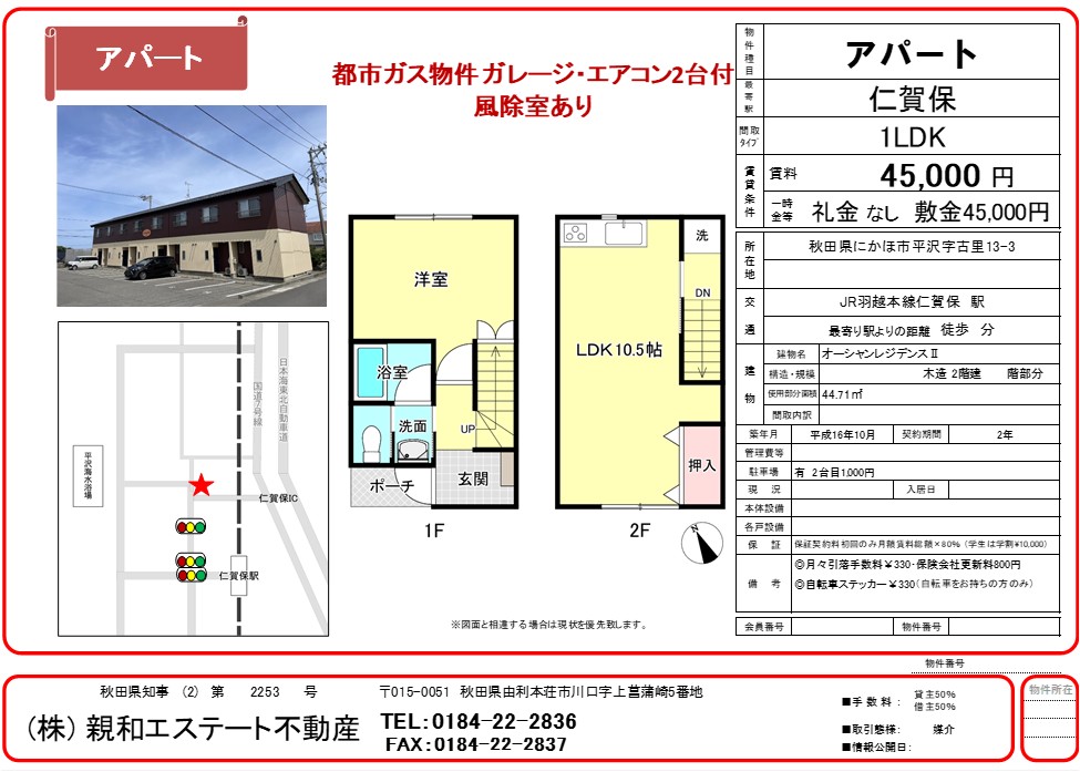 仁賀保駅から徒歩12分・車で3分
