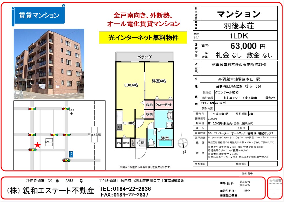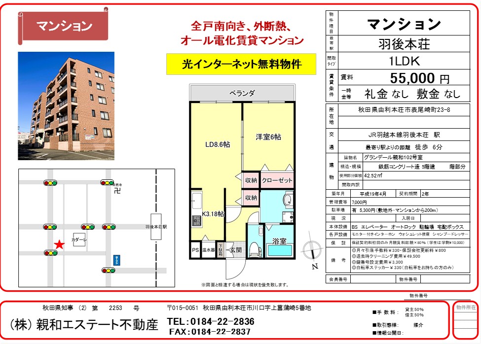 JR羽後本荘駅より徒歩6分
