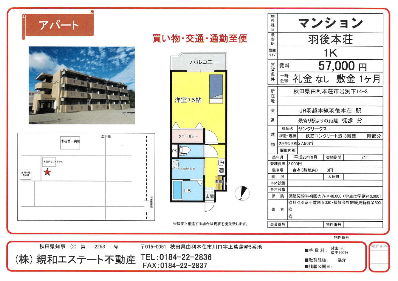 - エアコン・温水洗浄便座・洗面台・一口IH・シューズボックス・クローゼット・モニター付きインターホン・ベッド付き・室内物干し・ベランダ