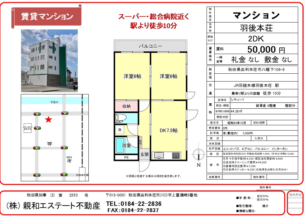 羽後本荘駅より徒歩10分