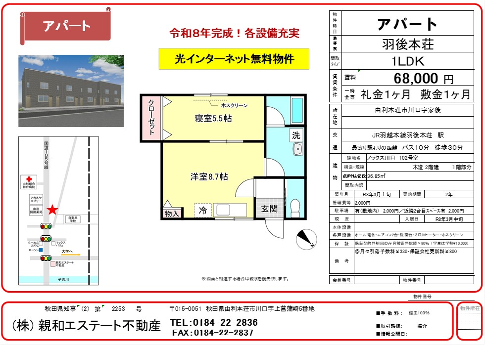 令和8年3月上旬完成予定 インターネット無料 各設備充実