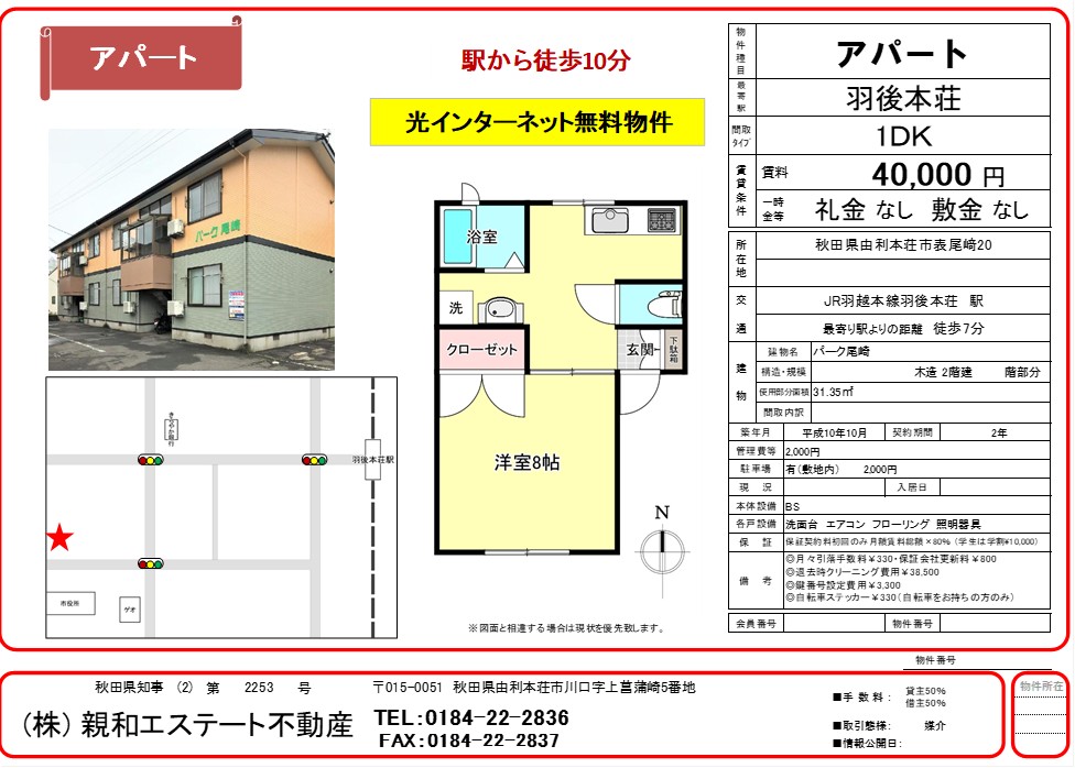羽後本荘駅より徒歩10分