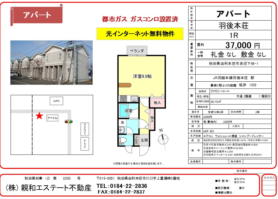 羽後本荘駅より徒歩15分