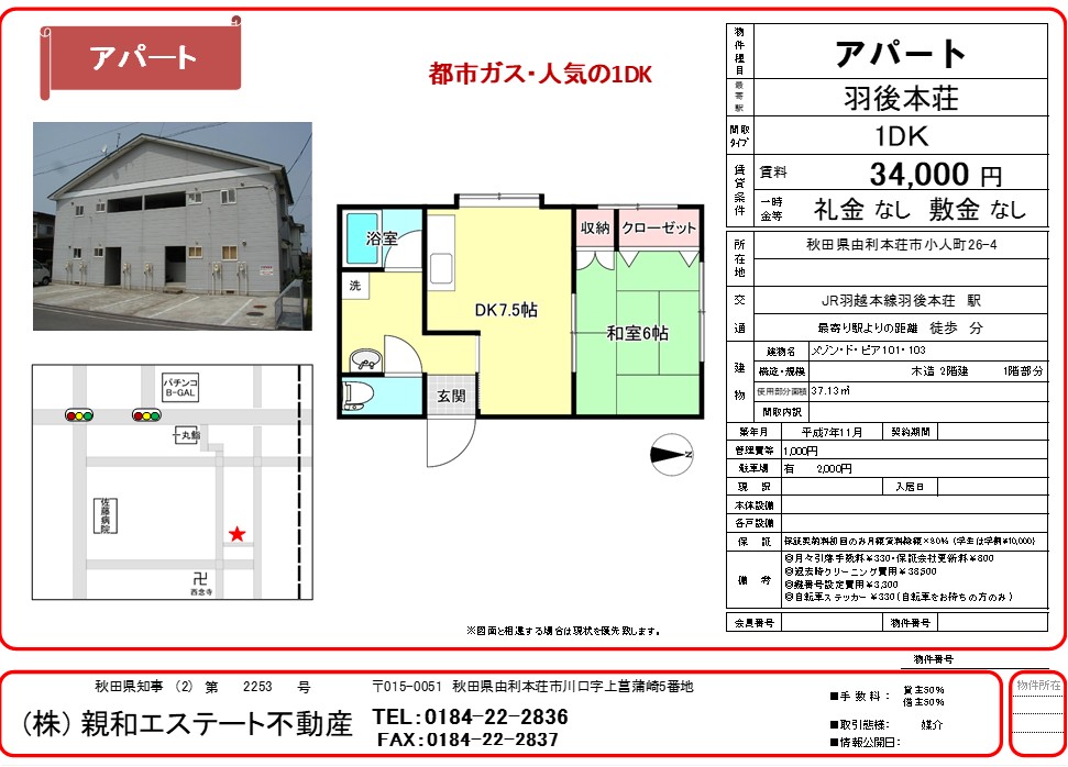 羽後本荘駅よりバス6分 バス停「大鍬町北」徒歩2分
