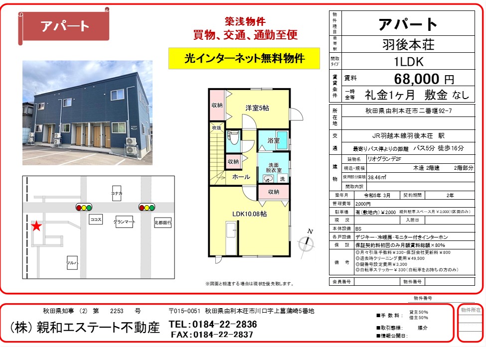 5分羽後本荘駅から徒歩16分・車で5分