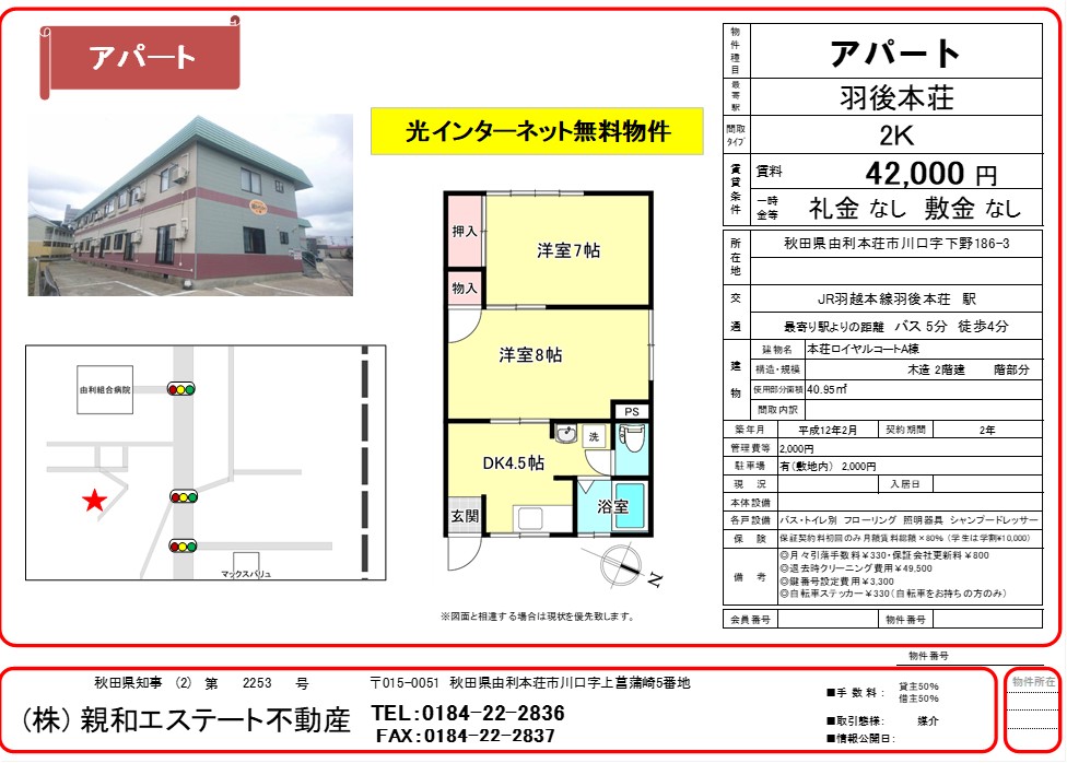 2K/ キッチン4.5帖・洋室8帖・洋室7帖